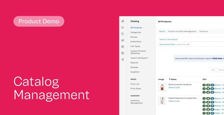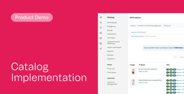 Product Demo | Catalog Implementation Set up your catalog, including categories, products, SKUs and associated content, attributes and specs. See More